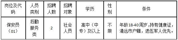清遠(yuǎn)市清城區(qū)機關(guān)事務(wù)管理局因工作需要,根據(jù)《關(guān)于印發(fā)<清遠(yuǎn)市清城區(qū)機關(guān)事業(yè)單位專項工作聘員、合同制聘員以及后勤服務(wù)類人員管理辦法>的通知》(城區(qū)人社〔2022〕20號)文件精神,面向社會公開招聘后勤服務(wù)類人員2名,現(xiàn)將有關(guān)事宜公告如下: