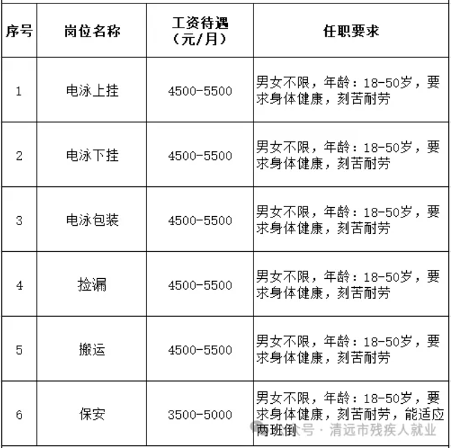 1、接受能勝任以上崗位的殘疾人;