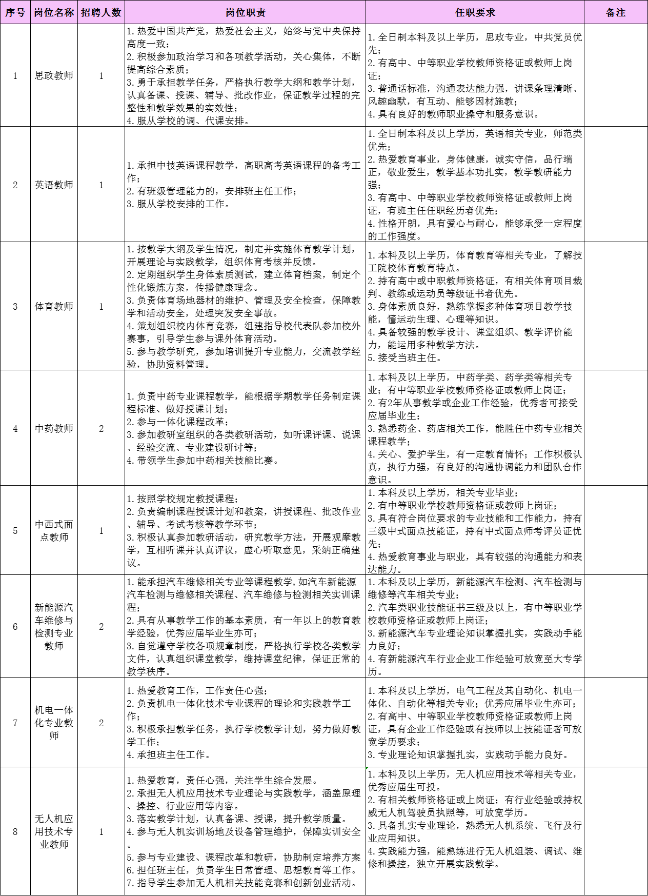 清遠(yuǎn)市南方技工學(xué)校2025年下半年教職工招聘崗位 - 20250720.xlsx